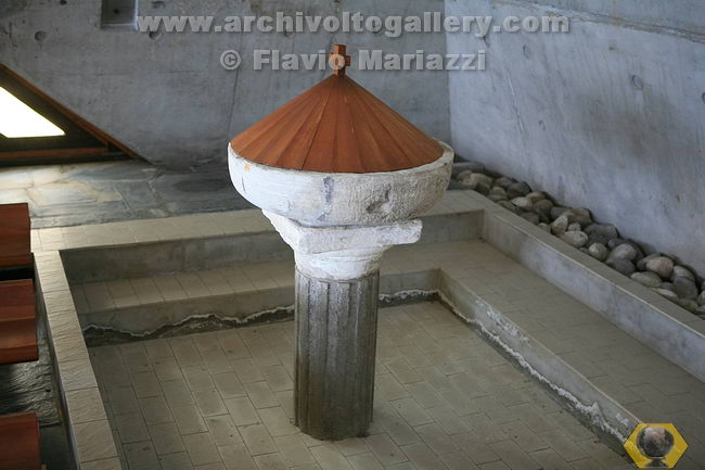 All'interno della cappella l'acquasantiera.