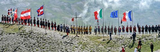 termine della marcia alla testa dell'Assietta i figuranti delle