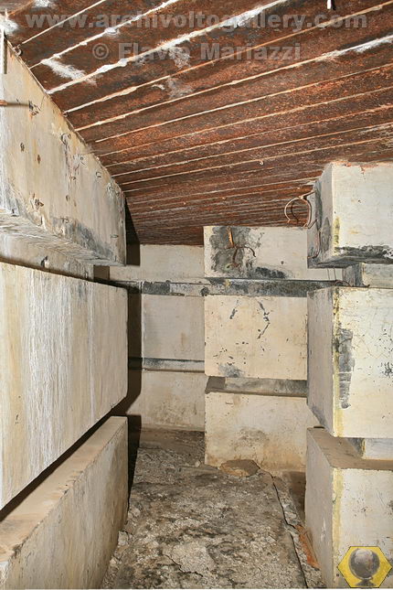 Corridoio interno verso le postazioni, sulla destra alcuni vani di