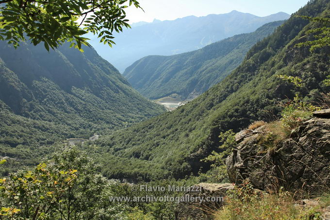 La vista verso il fondo valle, s'intravede il bacino idroelettrico