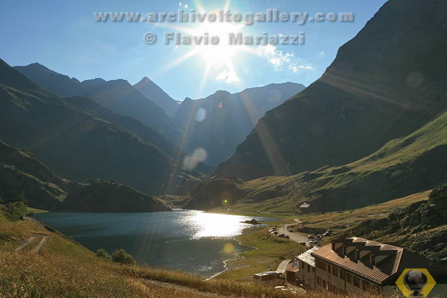 Tramonto sul lago di Malciaussia con sullo sfondo il Rocciamelone