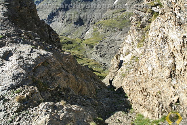 Vista verso il basso tra 2 piccole guglie di roccia