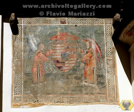 L'affresco al di sopra dei resti dell'antica entrata murata in Piazza San Giusto,