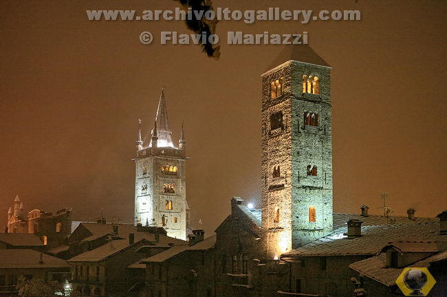 campanile della Cattedrale sulla sinistra, appare irreale accompagnato sulla destra dal campanile della chiesa sconsacrata di Santa Maria Maggiore